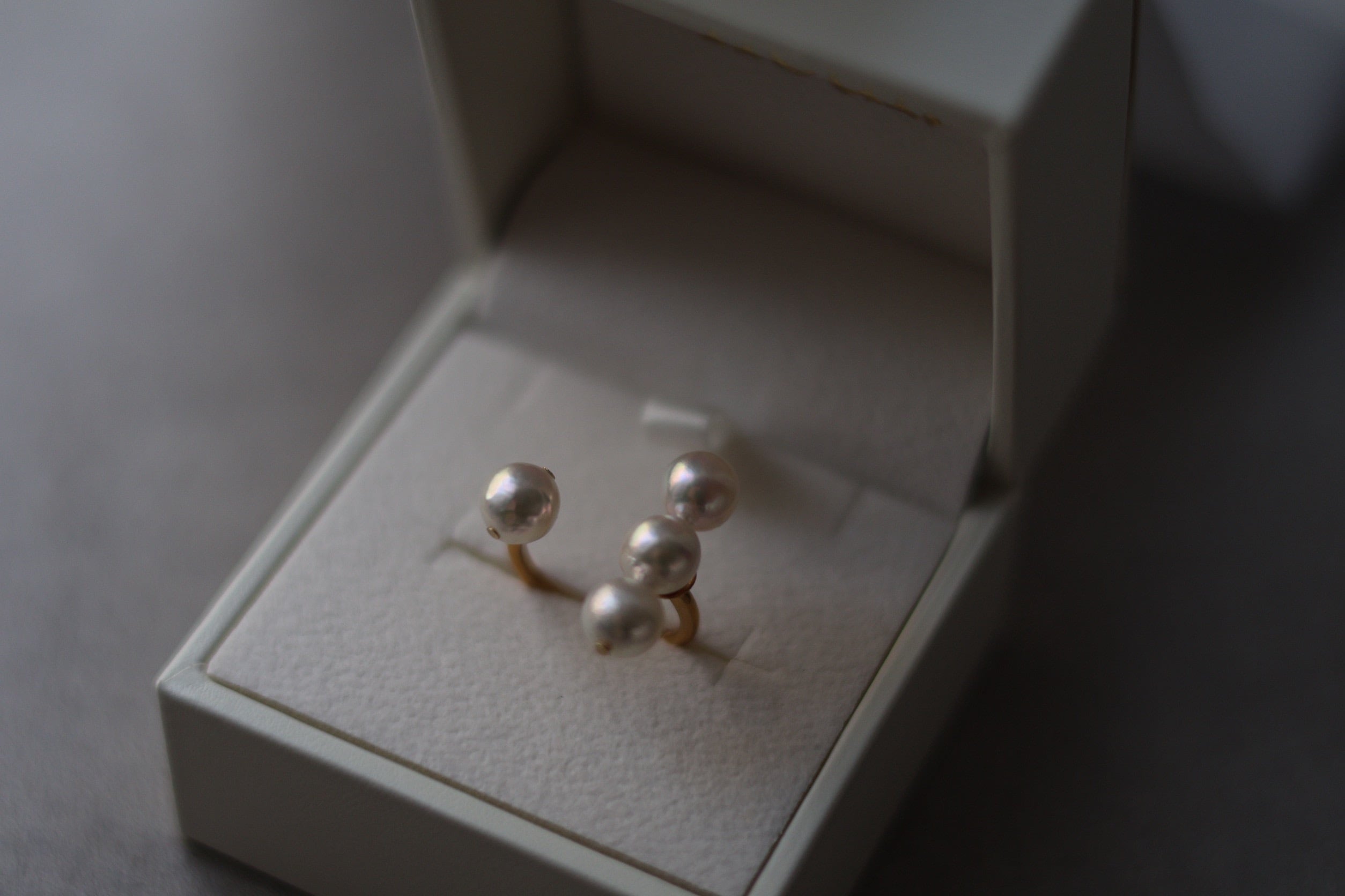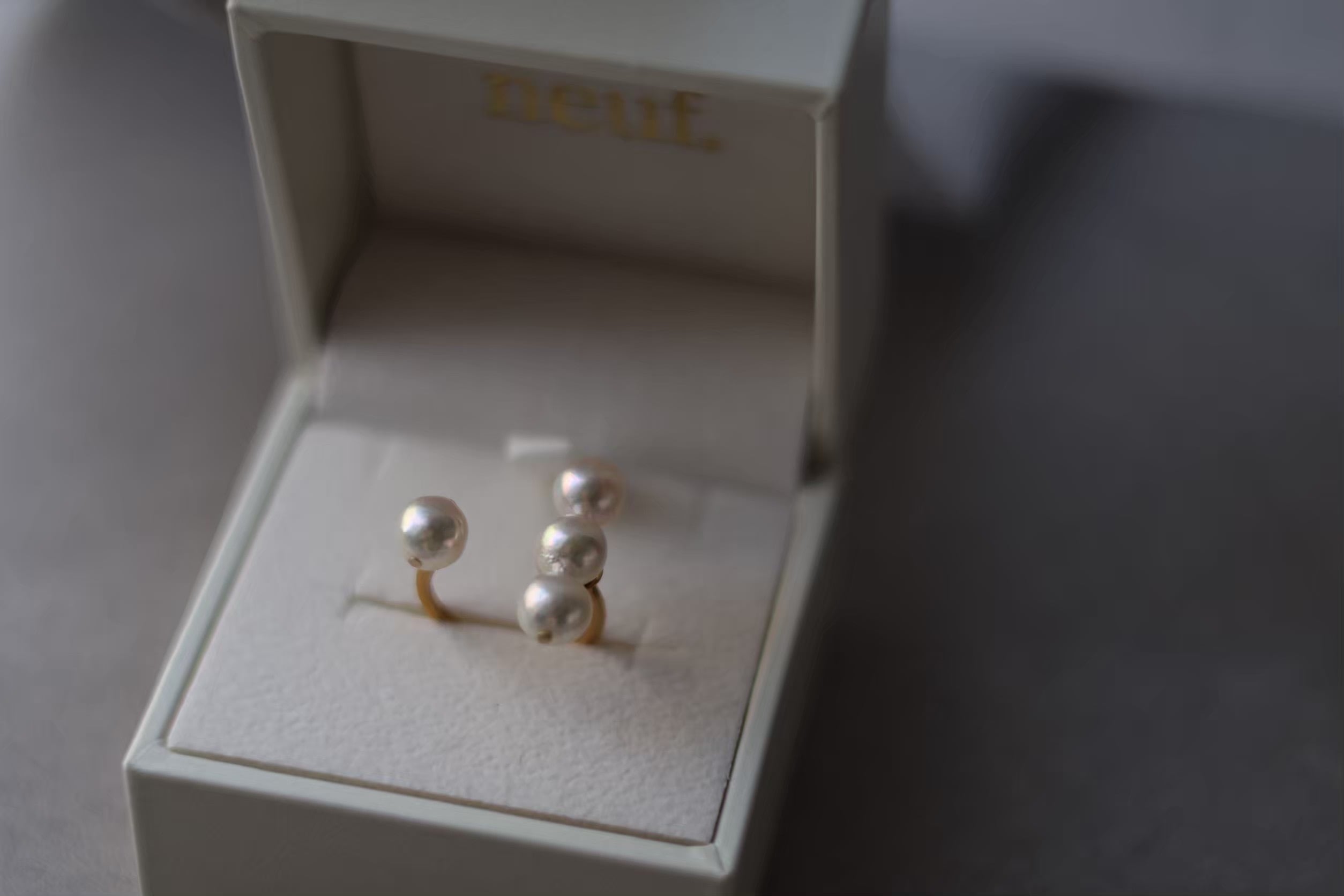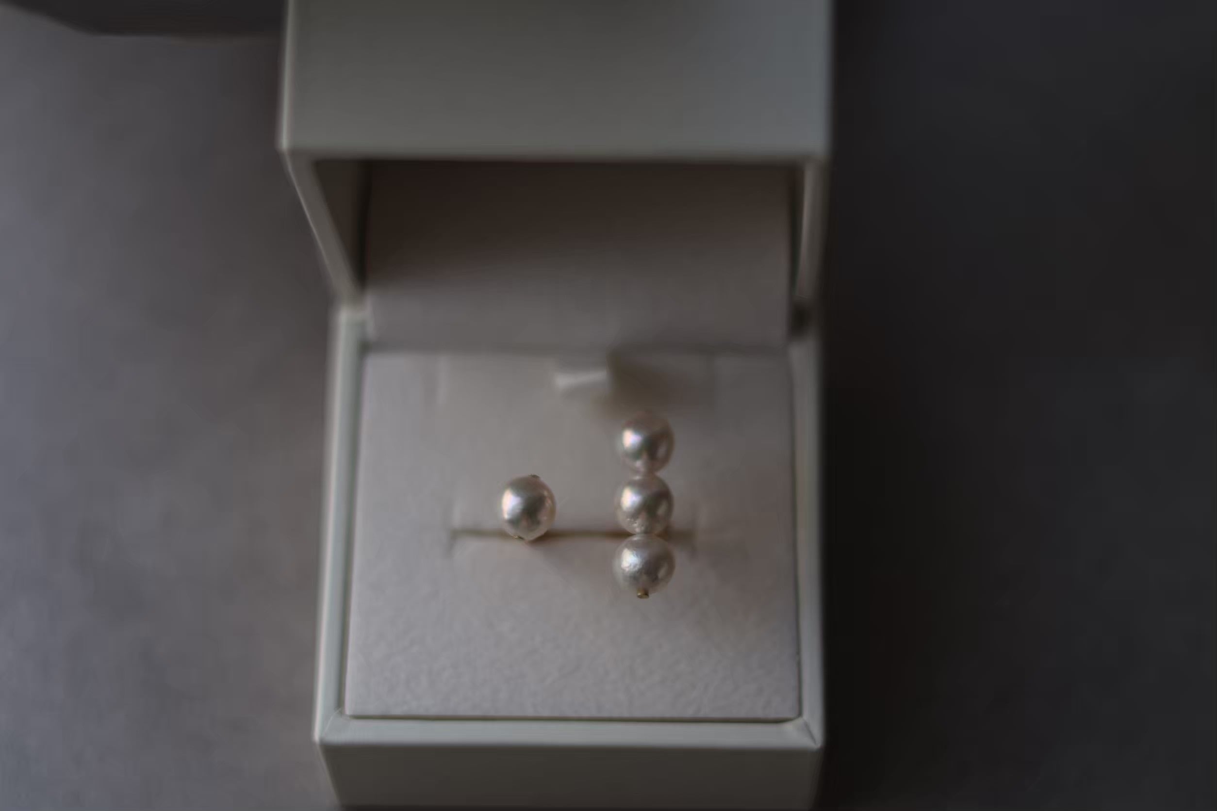 ・養殖中に自然に出来た小さなへこみ(エクボ)や突起の様なでっぱりがある真珠もございますが、これは自然によって生まれた本物の証、真珠の個性として楽しんでいただけたら幸いです。(ご着用頂いた際に綺麗な面が表にくる様にお作りしています。)